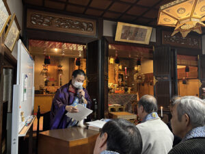 住職の法話は、浄土真宗と宗祖親鸞の足跡について熱量を込めてかつ分かりやすくお話いただきました。